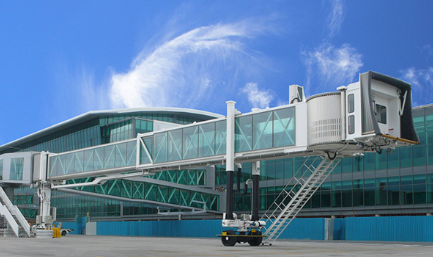旋轉伸縮式機橋旋轉伸縮式旅客登機橋是對接飛機和機場航站樓(或固定橋)的一種帶有封閉式旅客過道的登機設備。